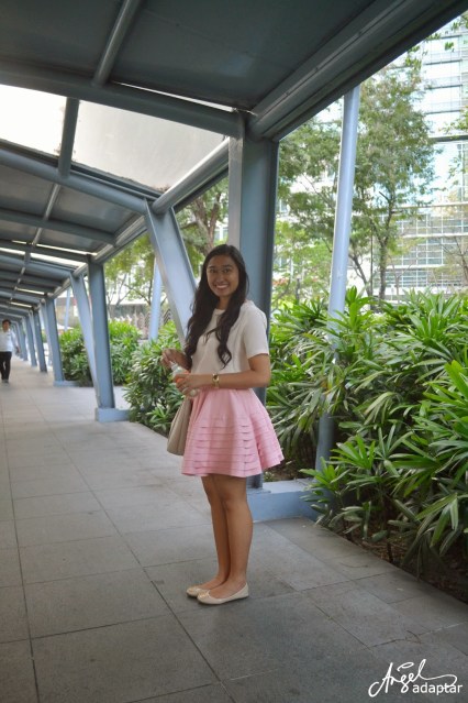 top from Chimes Specialty Store | tailored skirt designed by Roxanne Lacap of RL Fashion and Lifestyle | Fioni shoes from Payless Shoe Source | Memo bag