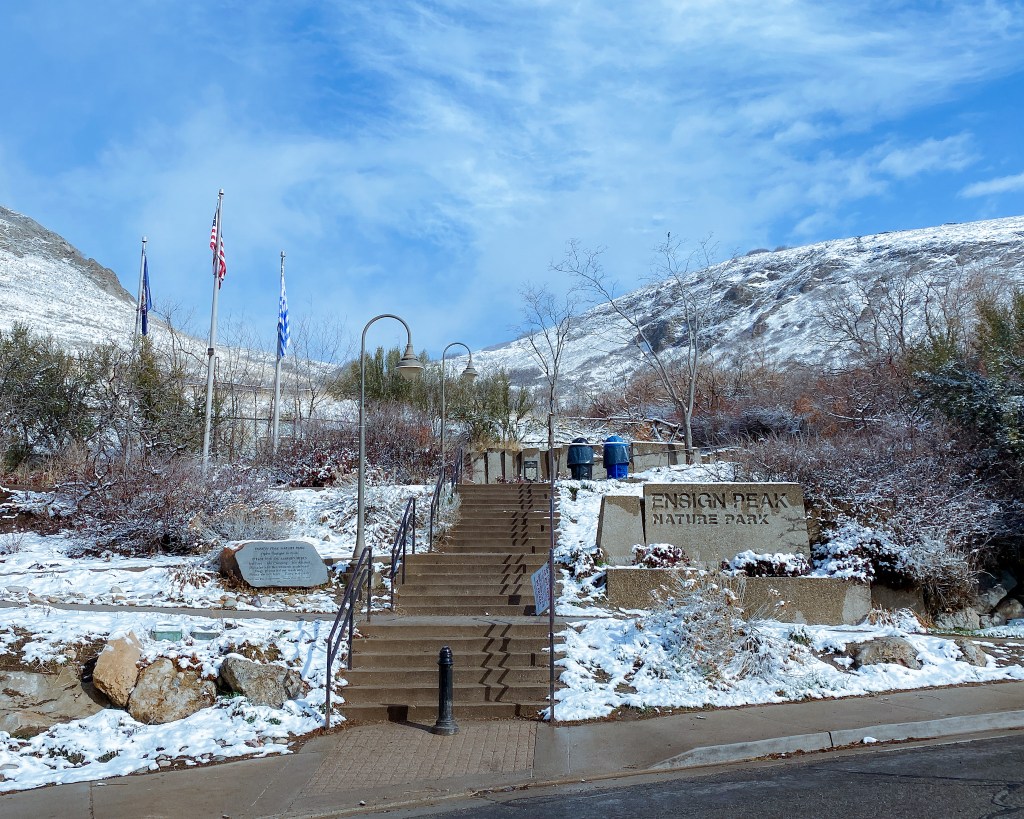 Ensign Peak is a quick 20-minute hike out and back. I decided to go to Ensign Peak to see the view of the city from up the hill but it was foggy when I got there and I can already see that the visibility is really low so I decided to drive around on my way back to the hotel to see snow-covered neighborhoods. Salt Lake City was really pretty.